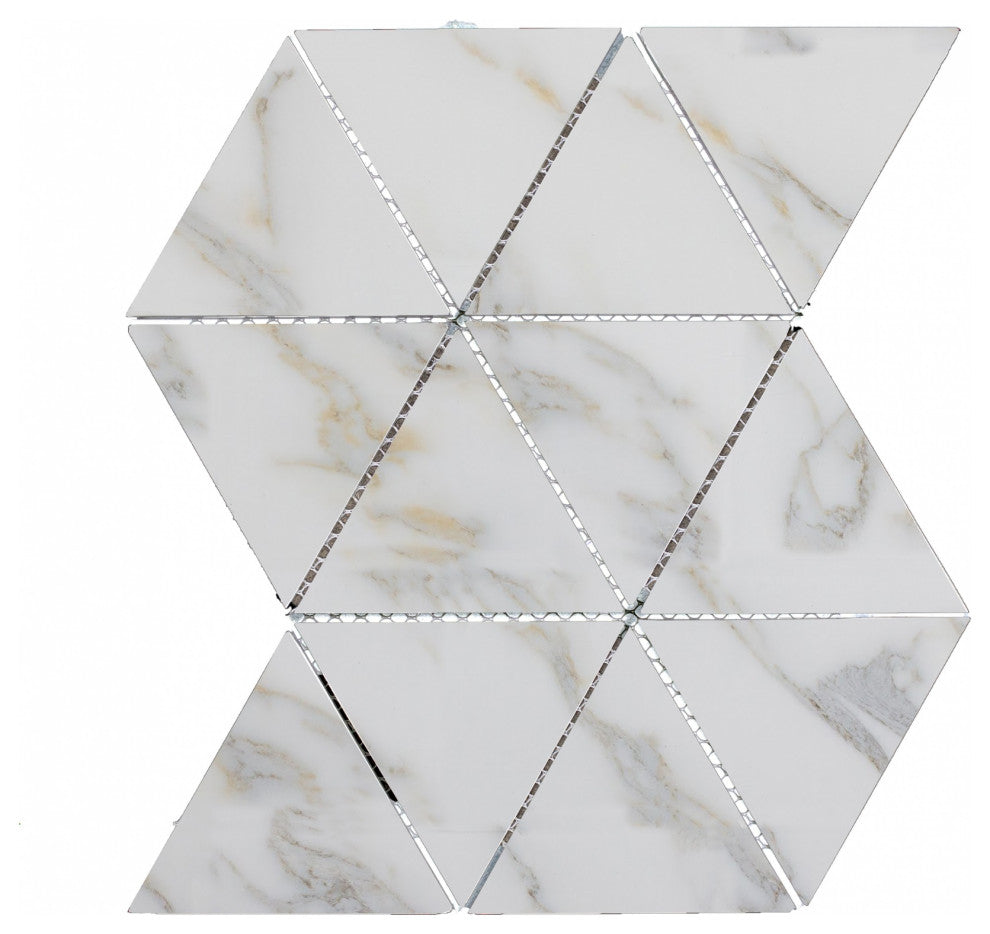 Nature 4 in x 4.5 in Glass Triangle Mosaic in Calacatta White Gold
