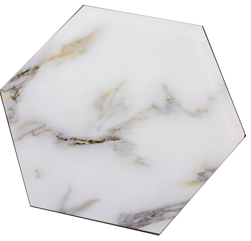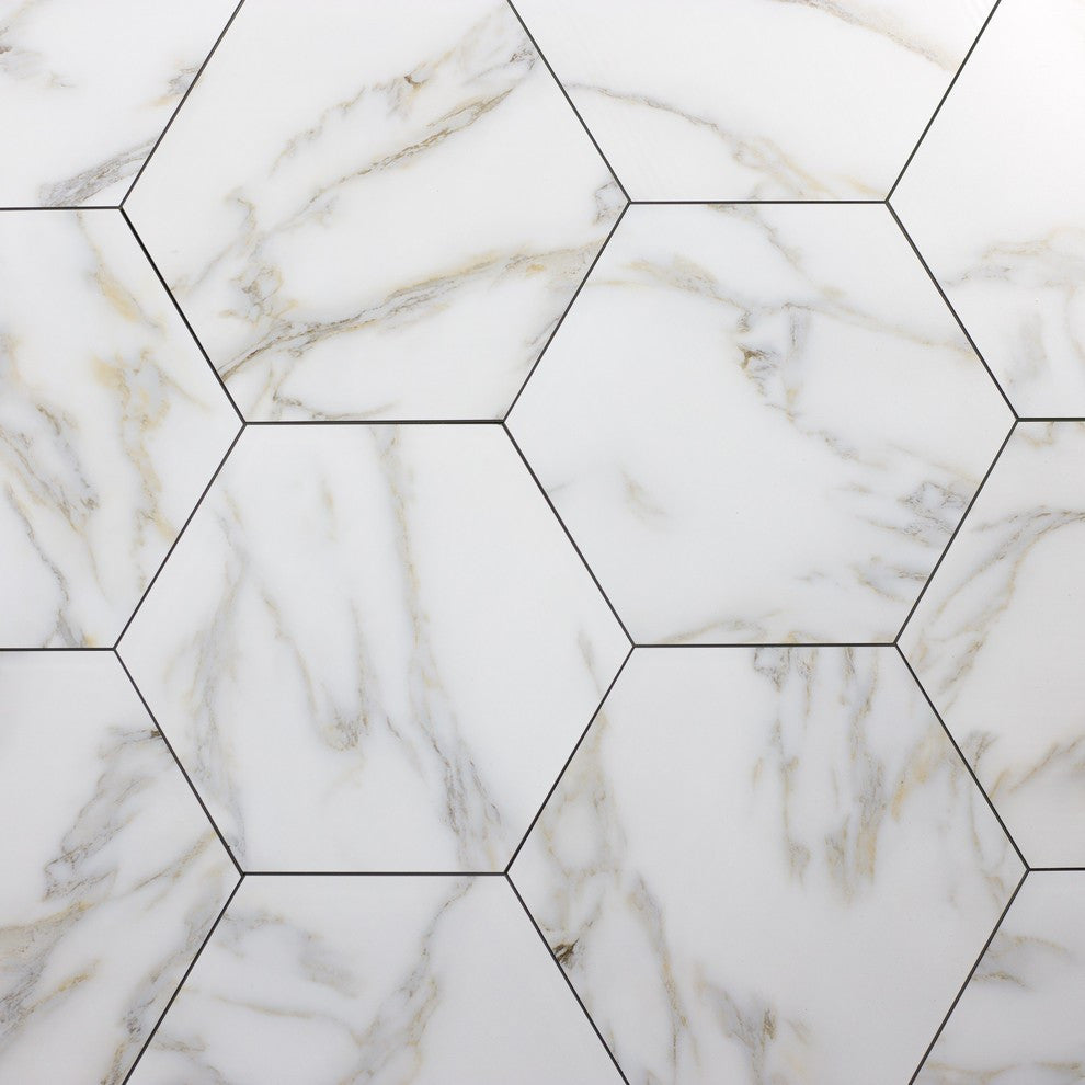Nature 8 in x 8 in Glass Hexagon Tile in Calacatta White Gold