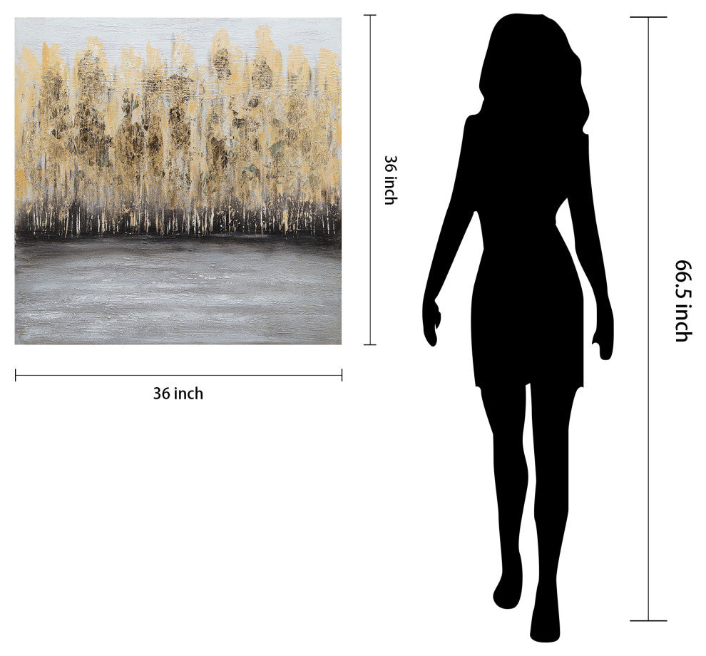 Artist Martin Edwards loves the texture and feel of paint and the sensuous beauty of color and tries to make the most of these two elements in his original works of art. This specific style shouts movement and mood as it moves across the canvas and the color only serves to intensify the emotion displayed. This piece uses subtle variations in technique and metallic color combinations to display a three-dimensional, hand painted, piece of art that displays golden trees in the forest. Comes with 2 pre-installed D-rings which make it simple to display on any wall horizontally.