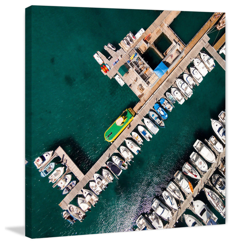 "Neatly Docked Boats" Print on Canvas by Karolis Janulis features vivid tones and supple artistry. Printed on canvas, this 32 inch wide by 32 inch tall piece will be an exceptional addition to any room. Fine art canvas print from the Marmont Hill Art Collective Artwork by Karolis Janulis Professionally hand stretched Gallery wrapped in sustainable, non-warping wood Arrives ready to hang Made in the USA Includes a certificate of authenticity