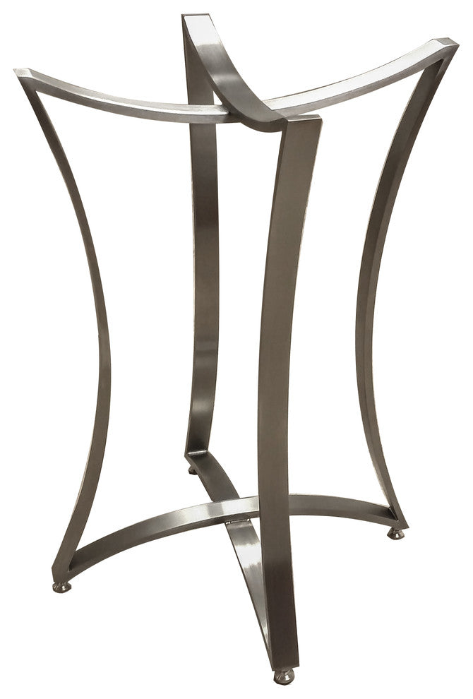 One of our exciting new designs is a one of a kind table base fabricated with stainless steel bars in a brushed finish. The base is fully welded with all welds polished seamlessly, and sold independently without a table top. We manufacture them in our Chicago area metal shop! Material - Type 304 stainless steel solid rectangle bars (1/2" X 1-1/2").Finish - Most commonly made using stainless steel bars with a fine brushed finish. Bases can also be made with steel bars and powder coated a different color, or darkened with a patina solution for a more rustic look.Leveling Feet (1" height x 3/4" dia) - Small stainless steel swivel leveling feet are welded to the base to ensure stability.Lead Time - 3 weeksShipping - We safely package in double-walled boxes. Weight Capacity - Neptune Bases have a 300 - 500 lb load capacity depending on the material size used.Affixing your table top to a Neptune Base -Holes (1/4" dia) to screw on wood table tops and other tops with wood substrates can be included.Granite and other slabs that do not have a wood substrate, can be affixed the the base using silicone or glue. Adhesive backed bumper pads can also be included if attachment is not desired.Glass tops generally do not get attached to the base, clear bumper pads can be included to use as a stabilizer for the glass and prevent it from sliding.
