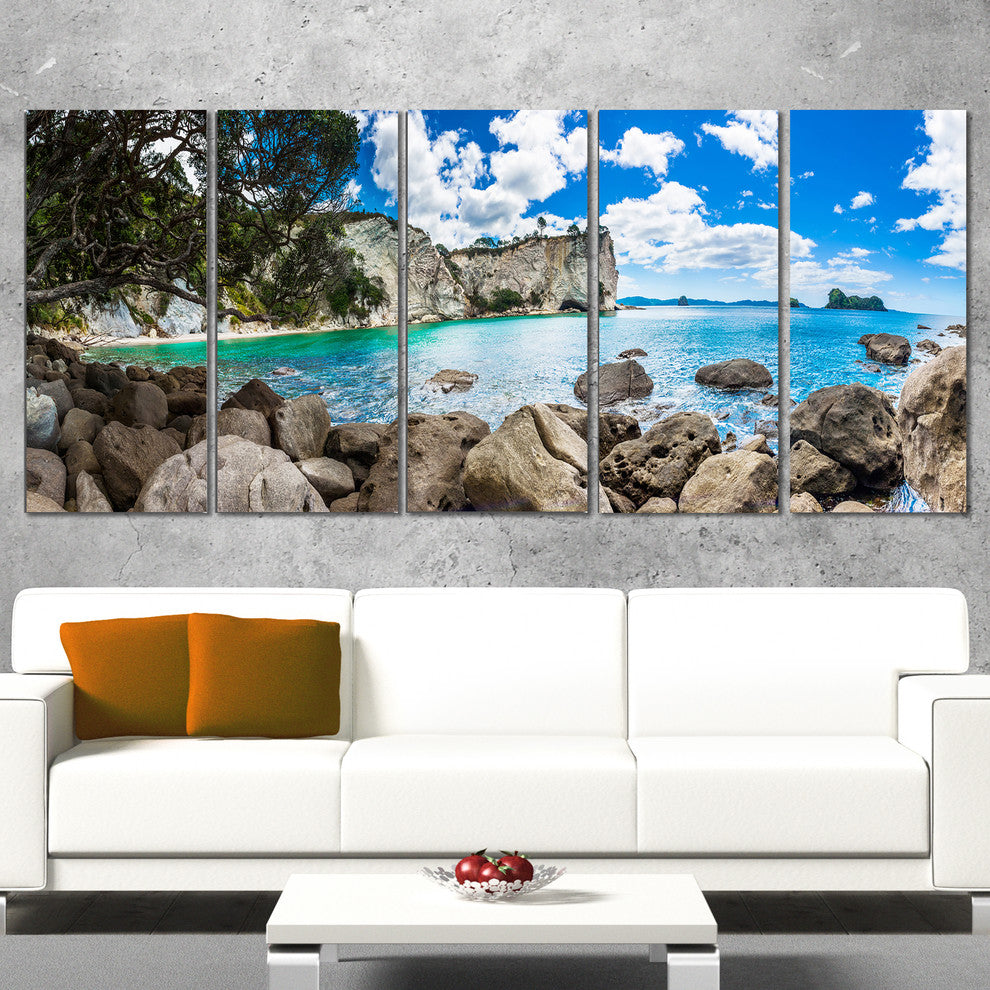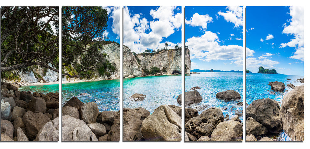 "Nestor Notabilis Kea Panorama" Extra Large Seashore Wall Art, 5 Panels, 60"x28"