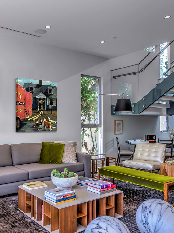 "New Dog in Town" Painting Print on Canvas by Stevan Dohanos features vivid tones and supple artistry. Printed on canvas, this 24 inch wide by 29 inch tall piece will be an exceptional addition to any room. Fine art canvas print from the Marmont Hill Art Collective Professionally hand stretched Gallery wrapped in sustainable, non-warping wood Arrives ready to hang Made in the USA Includes a certificate of authenticity