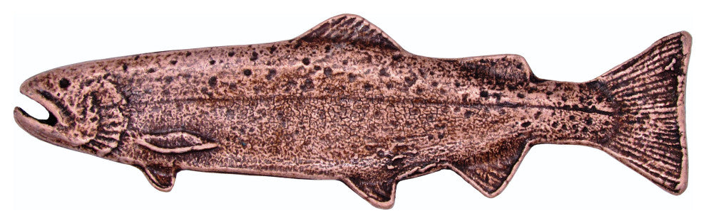 New Long Trout Left Face Cabinet Pull, Antique Copper