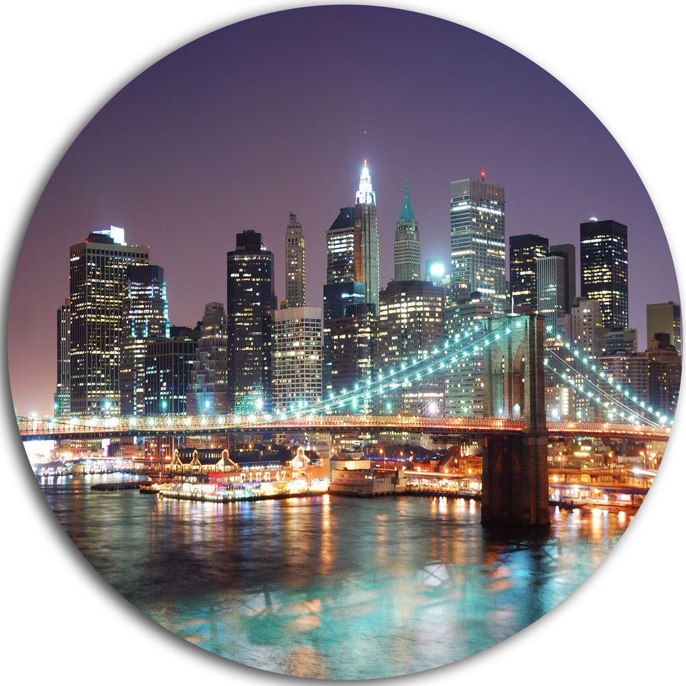 New York City Manhattan Skyscrapers, Cityscape Disc Metal Wall Art, 36"