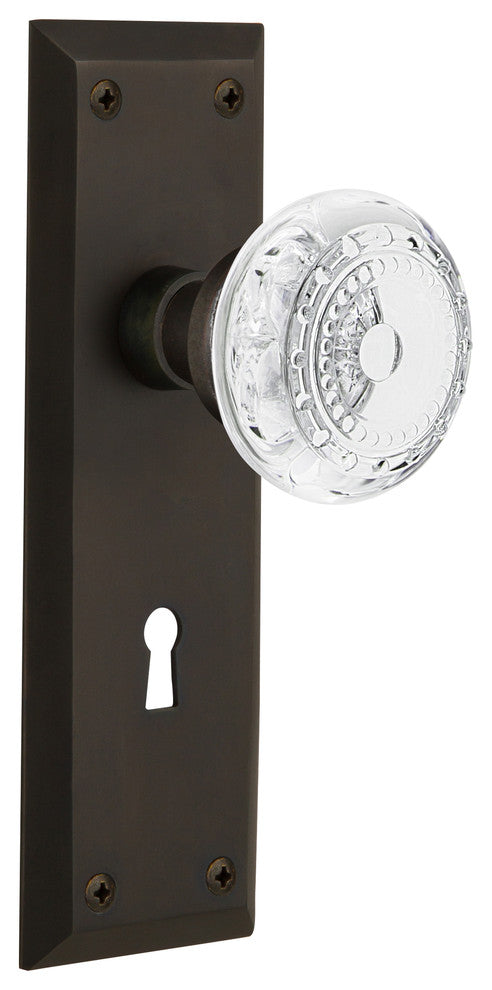 New York Plate Double Dummy, Keyhole Crystal Meadows Knob, Oil-Rubbed Bronze