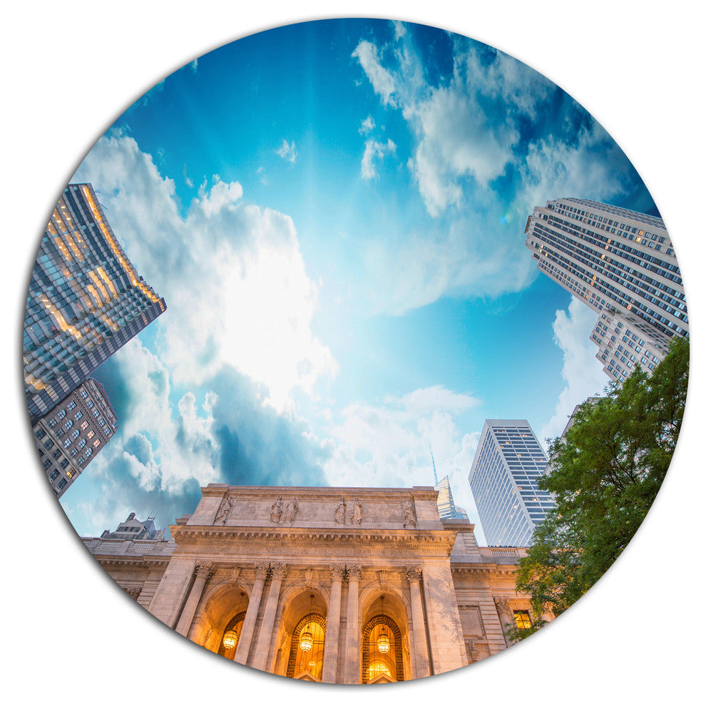 Bring Contemporary Abstraction to your home with this large Circle Metal wall art. This New York Public Library Metal Artwork makes it the focal point of any room or office.