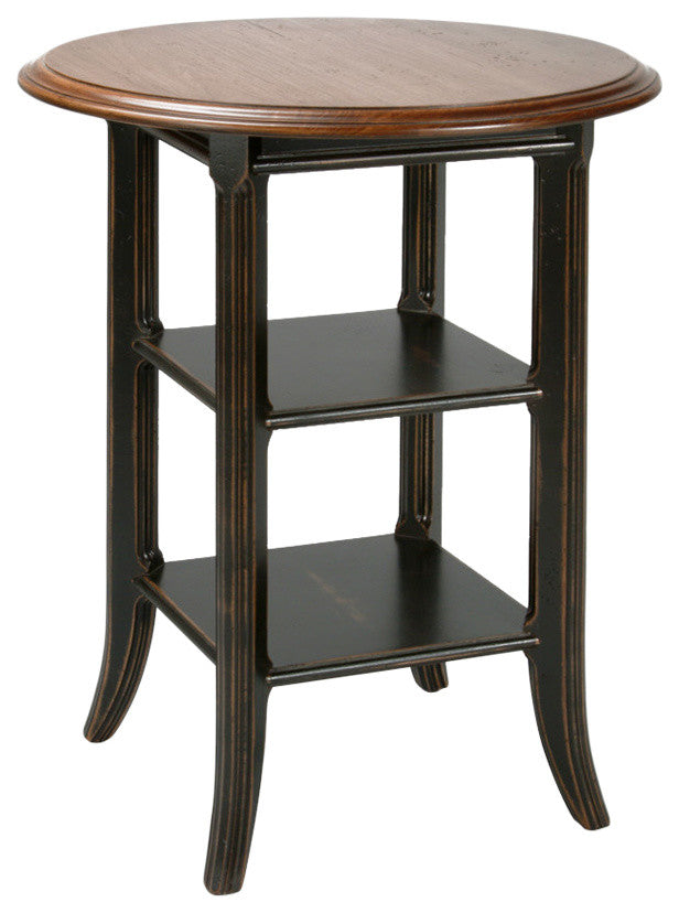 Featuring a distressed black base and a colonial wood top, the Newbury Side Table is simple and classic. Pair it with traditional decor for a cohesive feel. Made in USA.
