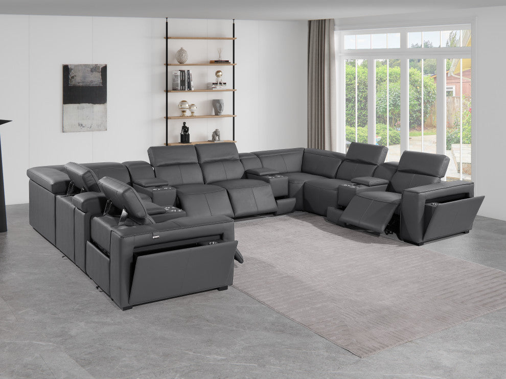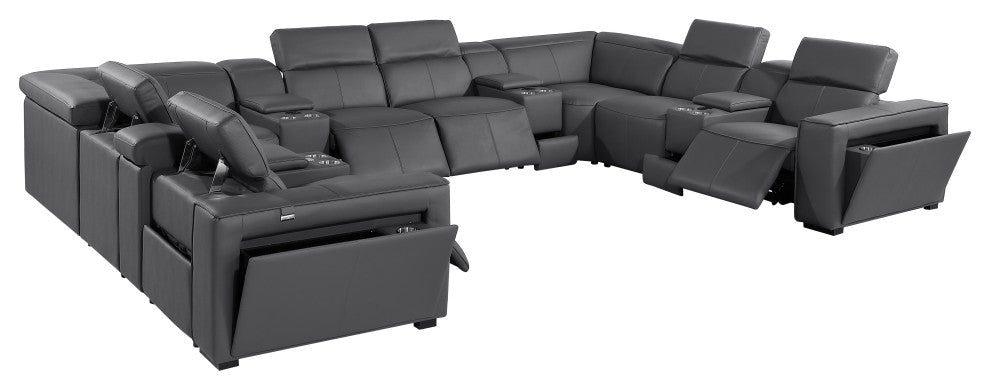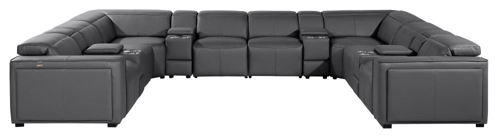 Niccolo Italian Leather 12-Piece U-Shaped 4 Power Reclining Sectional, Dark Gray