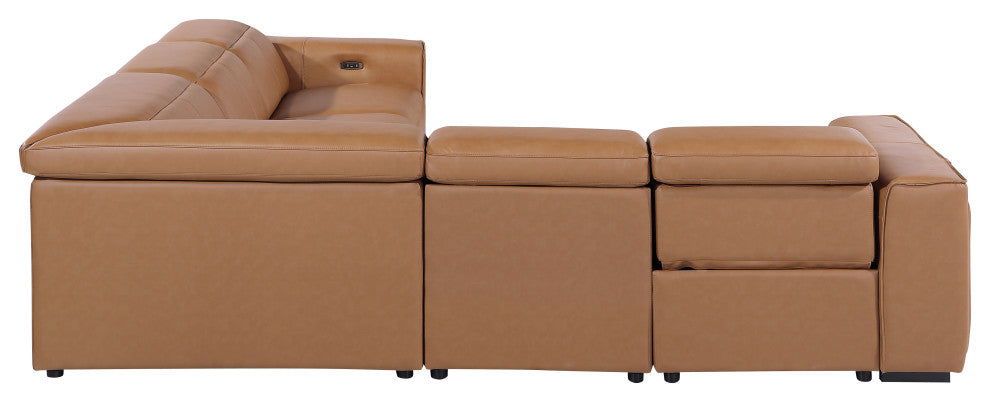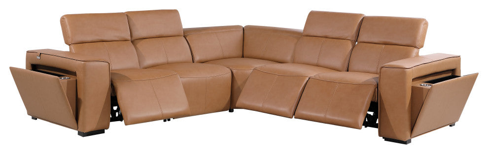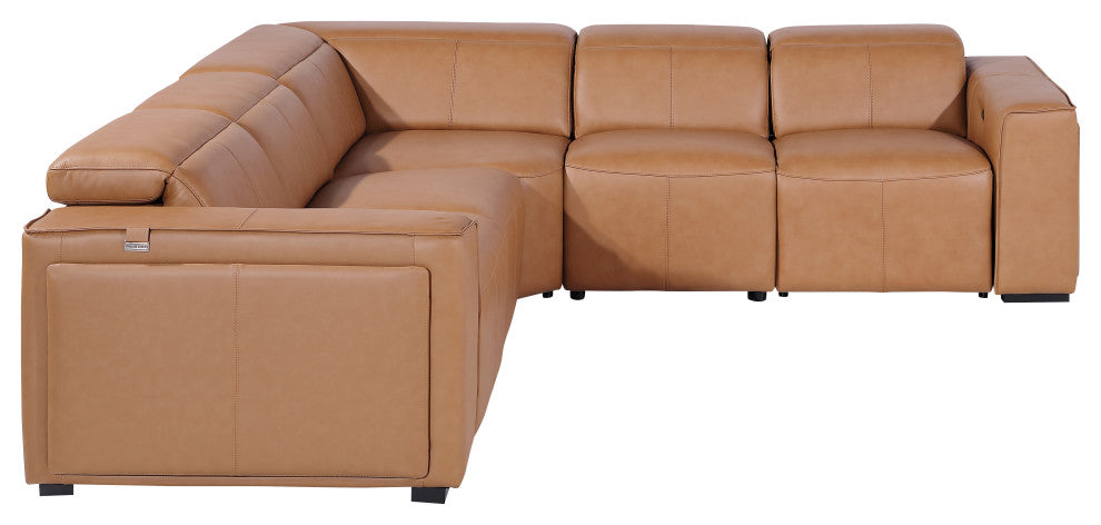 Niccolo Italian Leather 5-Piece L-Shaped Power Reclining Sectional, Cognac