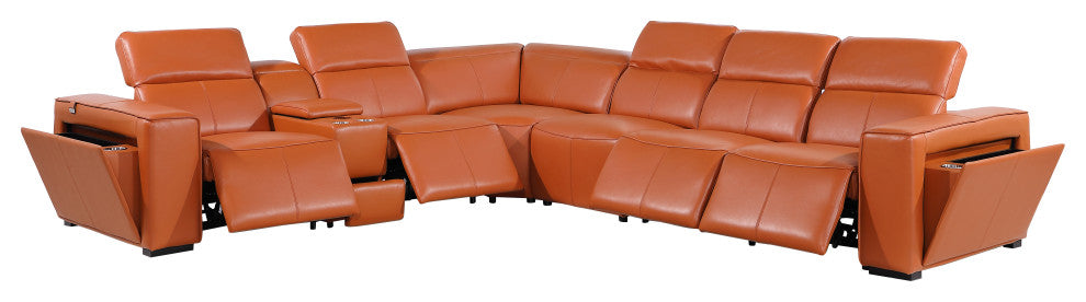 Niccolo Italian Leather 7-Piece L-Shaped Power Reclining Sectional, Camel