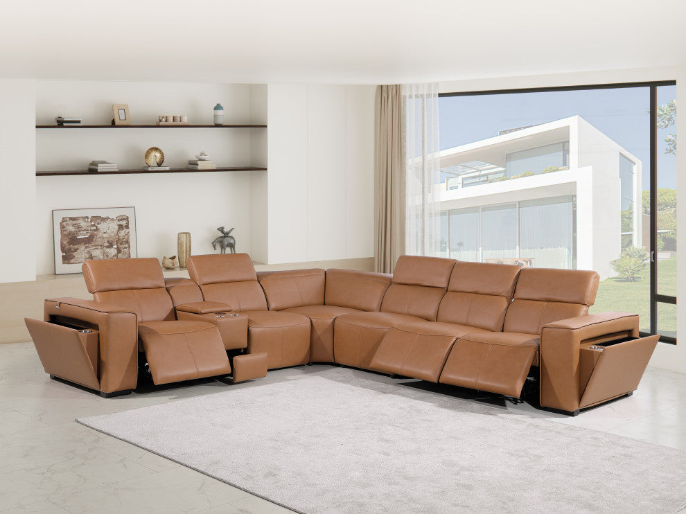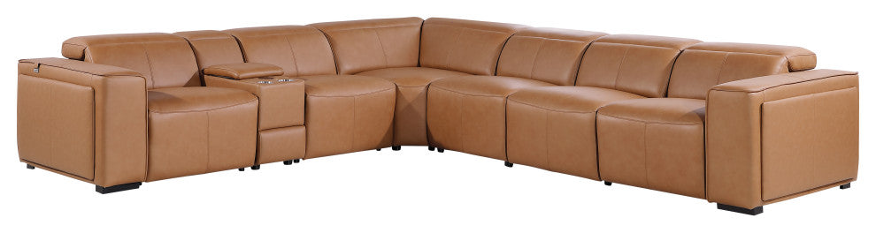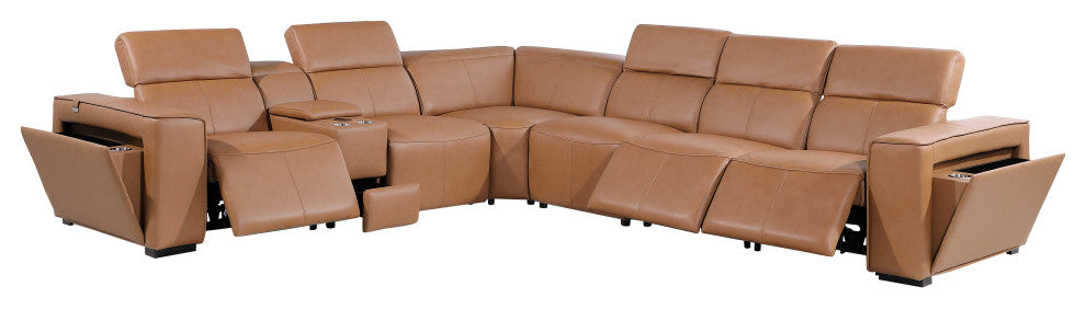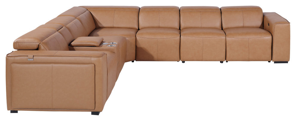 Niccolo Italian Leather 7-Piece L-Shaped Power Reclining Sectional, Cognac