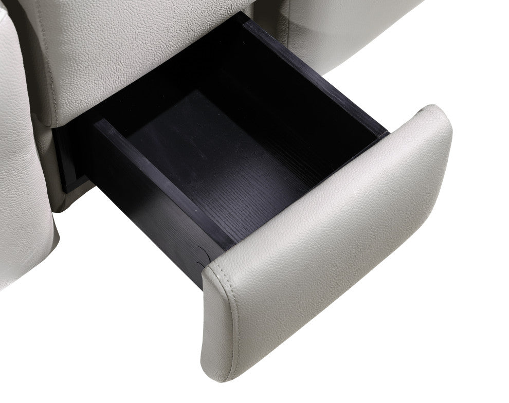 Designed with convenience in mind, the sectional includes built-in consoles featuring cup holders for your beverages and storage drawers to keep small items like remotes, magazines, or other essentials organized. Hidden storage compartments in the arms provide additional space to keep your living area neat and clutter-free.
