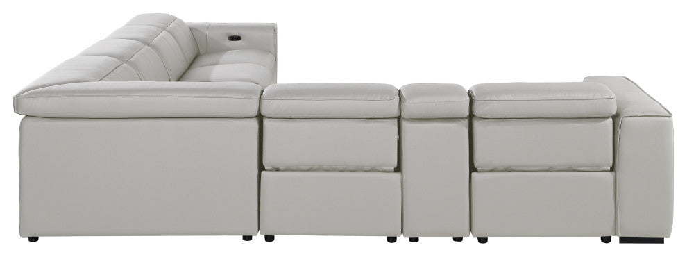 Niccolo Italian Leather 7-Piece L-Shaped Power Reclining Sectional, Light Gray