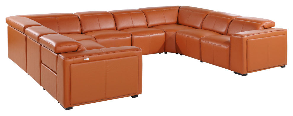 Niccolo Italian Leather 8-Piece U-Shaped 4 Power Reclining Sectional, Camel