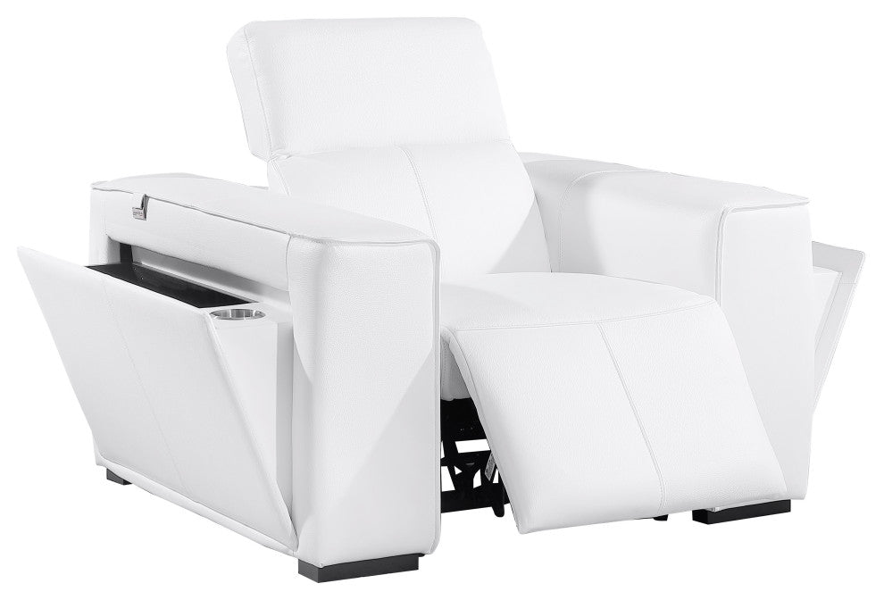 Niccolo Italian Leather Power Reclining Arm Chair With Power Headrests, White