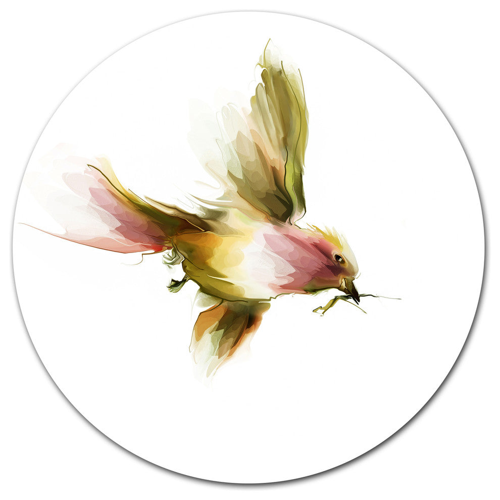 Nice Flight Of Lovely Green Bird, Modern Animal Round Wall Art, 11"