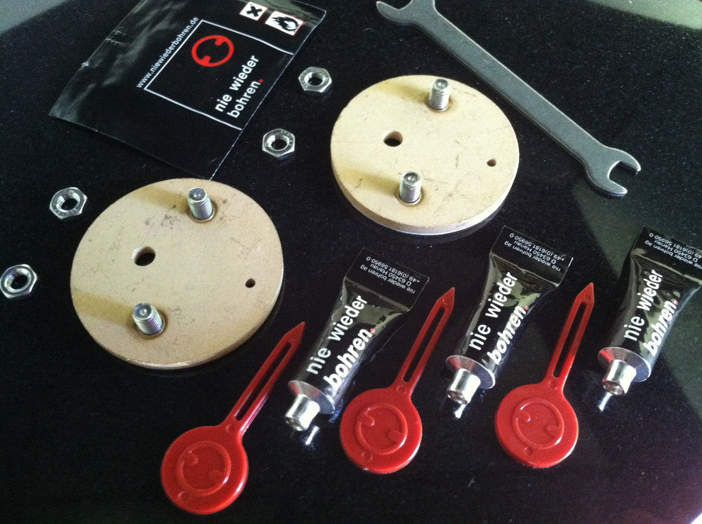 100% rustproof construction and includes the patented German made no drilling mounting system. The mounting system installs without any tools, no measuring and carries a Lifetime Replacement Warranty. Designed for use on tile, stone, glass, metal, wood and concrete. The system is also removable if needed and is ideal for renters, remodels and to remove before you move! 250lb. Capacity, 100% Rustproof construction, 12" end to end, 10-1/4" on center, 3-7/16" projection from wall, nie wieder bohren no drill mounting hardware included, installs in minutes