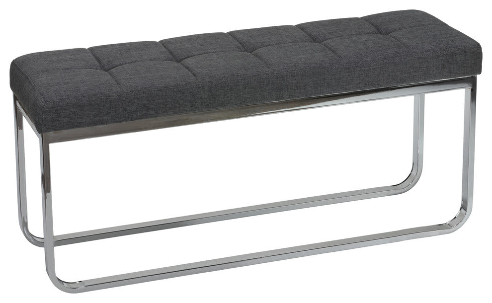The Nola bench has a contemporary style with its soft grey linen fabric and features rounded polished stainless steel legs. The bench is perfect for narrow spaces such as an entryway or anywhere else extra seating space is needed.