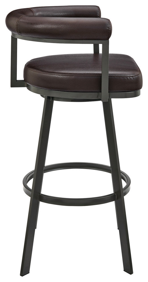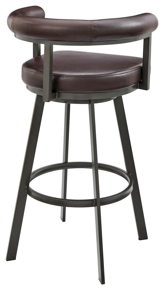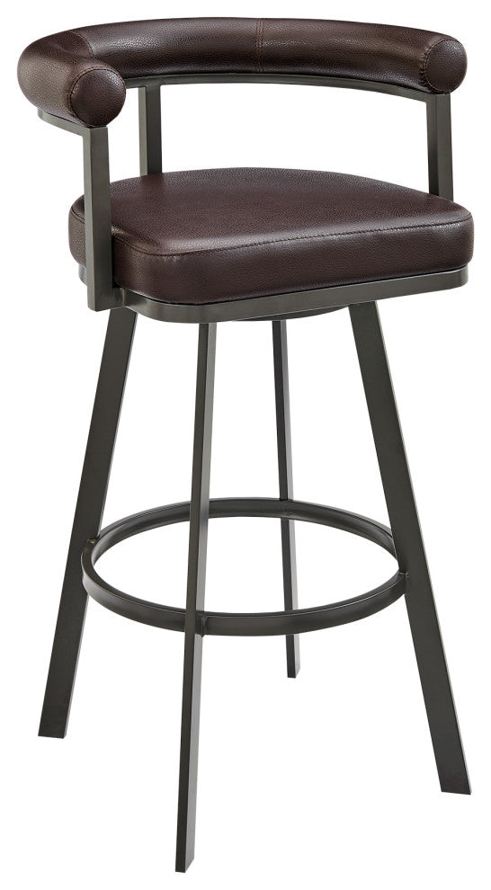 Glam up your space with the flair of our Nolagam swivel bar or counter stool in faux leather and metal from Armen Living. Featuring a minimal and streamlined barrel back, our mid-century modern counter stool vouches for a sleek and inviting look. The plush cushioning at the back and the padded seat offers a comfortable seat while the open back allows for breathability. Uplifted with a chic metal frame, our stylish counter or barstool makes a powerful design statement. Upholstered in faux leather, it provides a comfortable stay at a high dining area, kitchen counter, or worktable. Faux leather does not crack easily and is stain resistant, does not fade easily and is also UV resistant. Counter or bar height stools that feature a swivel mechanism tend to be much more convenient for everyday use or when entertaining. The wonderful full 360-degree swivel function allows for maximum mobility. The smooth glide swivel function allows you to change directions with ease, making this your new favorite seat in your home.• Product Dimensions- W: 23.5 X D: 21.5 X H: 38• Swivel Function - The Wonderful Full 360-Degree Swivel Function Allows For Maximum Mobility. The Smooth Glide Swivel Function Allows You To Change Directions With Ease, Making This Your New Favorite Seat In Your Home!• Upgraded Fabric - These Stools Are Upholstered In A Luxurious Faux Leather That Is Soft To The Touch And Comfortable To Sit On For Hours On End. Make Clean Up A Breeze And Easily Wipe Away Any Spills Or Messes In Seconds Allowing You More Time To Enjoy And Less Time Cleaning.• Color Preferences - The Nolagam Is Available In A Variety Of Finishes From Matte Black And Java Brown To Stainless Steel. It Can Be Upholstered In A Wide Of Colors Including Black, Brown, White And Shades Of Grey To Best Suit Your Home.• Height Variation Options - Whether You Have A Kitchen Island, A Bar Table, Pub Table, Or Peninsula - We''Ve Got You Covered With Any Height You Desire! This Stool Comes In Your Choice Of 26" Counter Height Or 30" Bar Height Options.• No Hassle Assembly - Look No Further For Beautiful, Functional, And Easy To Assemble Furniture For Your Home. This Piece Of Furniture Requires Assembly And Comes With Clear And Concise Step-By-Step Instructions That Make Set Up A Breeze!• Standing Behind Our Products - Armen Living Stands Behind All Products Sold And Gladly Offers Our Customers A 2-Year Limited Manufacturer Warranty On All Items. Our Products Are Made From High-Quality Materials That Will Last For Many Years To Come.