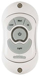 Take control of your ceiling fan experience with the Non-Reversible Fan and Light Remote. Featuring a crisp, white finish and easy to operate, gray push buttons, this fan remote includes three fan speeds and downlight control. The Non-Reversible Fan and Light Remote mounts easily over any switch plate and blends seamlessly with a variety of light wall colors.