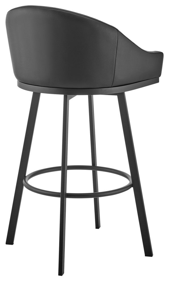 Noran Swivel Bar Stool in Black Metal with Black Faux Leather