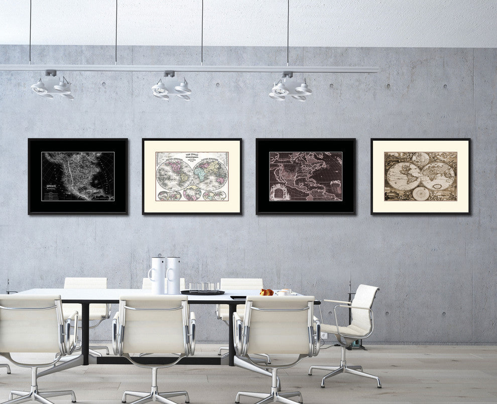 North America Canada Mexico Vintage Monochrome Map Canvas, 28"x37"