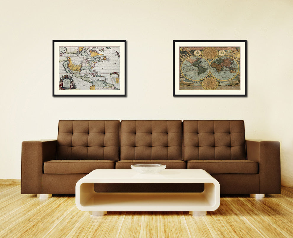 North America Vintage Map Print On Canvas With Picture Frame 16" X 21"