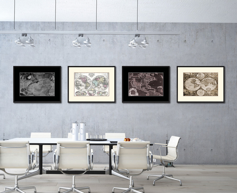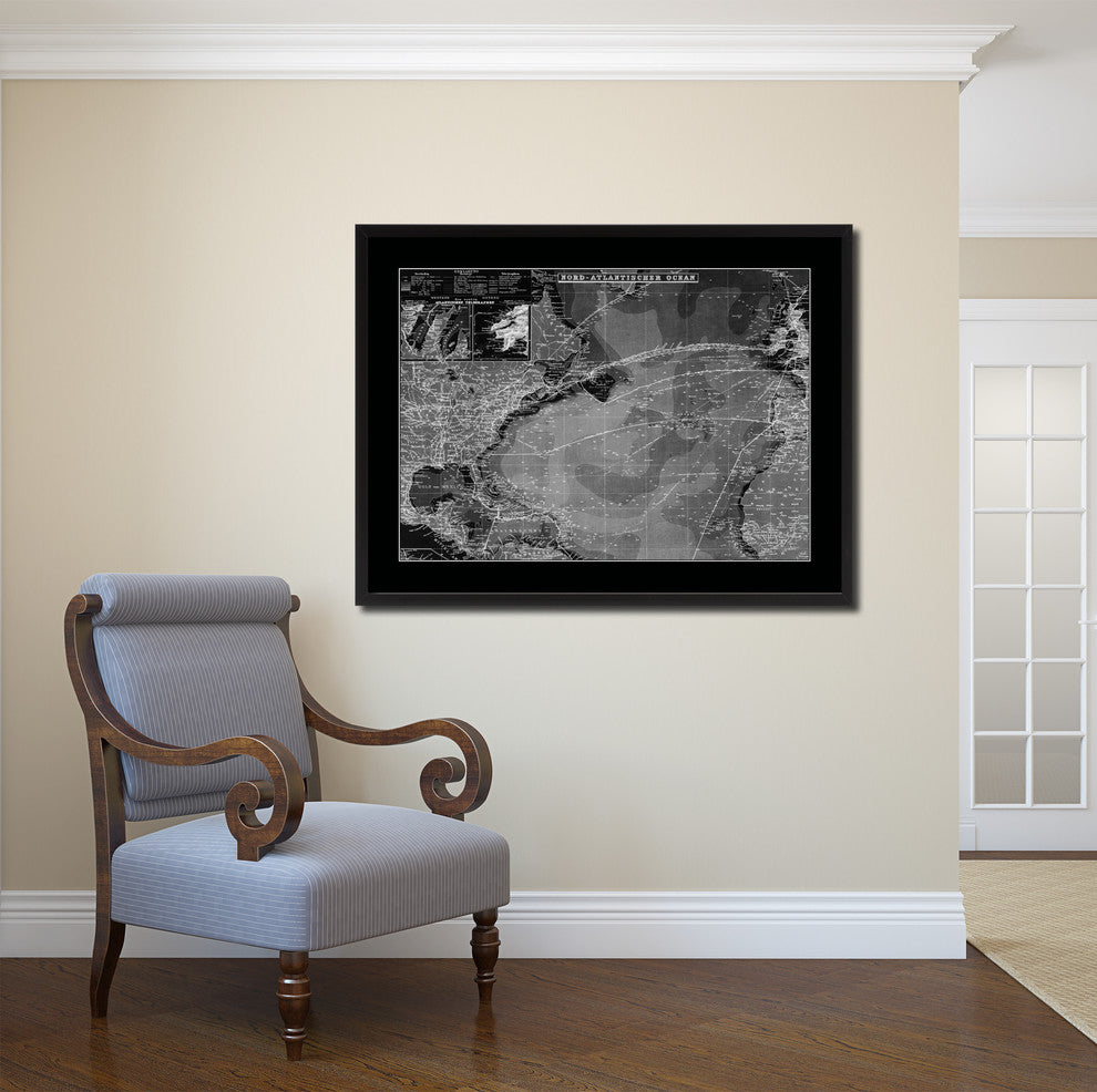 North Atlantic Telegraph Lines Stieler Vintage Monochrome Map Canvas, 16"x21"