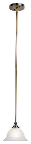 This mini pendant adds a clean, transitional, luminance to your decor. The black finish contrasts with white alabaster glass resulting in a distinctive lighting accent.