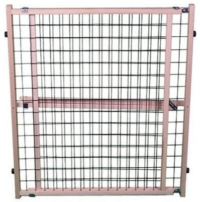The Extra-Wide Wire Mesh Petgate is specially designed for wide openings. The gate pressure mounts easily and securely without the use of hardware. Simply position and lock in place. The sturdy frame surrounds rigid vinyl-coated brown wire mesh panels, which adjust to fit openings 29.5 to 50" wide and is an extra-tall 32" high. The side bumpers are neutral in color and will not mark walls. Want to use this gate with your child? No problem. This gate is certified by the Juvenile Products Manufacturers Association (JPMA) for use with children ages 6 to 24 months of age. Safety and containment all wrapped up in one gate - how simple.• Height: 32"• Width: Adjusts to fit 29.5" - 50" wide• Mounting: Pressure Mount• Material: Wood• Color: Natural Finish• Location: Between Rooms/Hallways, Extra-Wide Openings/Barrier, Various• Pressure mounts instantly and securely without hardware• Sturdy frame surrounds rigid vinyl-coated wire mesh panels• No-mar rubber bumpers keep the gate in place without marking walls.