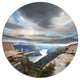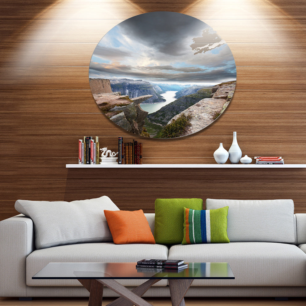Bring Contemporary Abstraction to your home with this large Circle Metal wall art. This Norway Rocky Terrains under Clouds Metal Artwork makes it the focal point of any room or office.