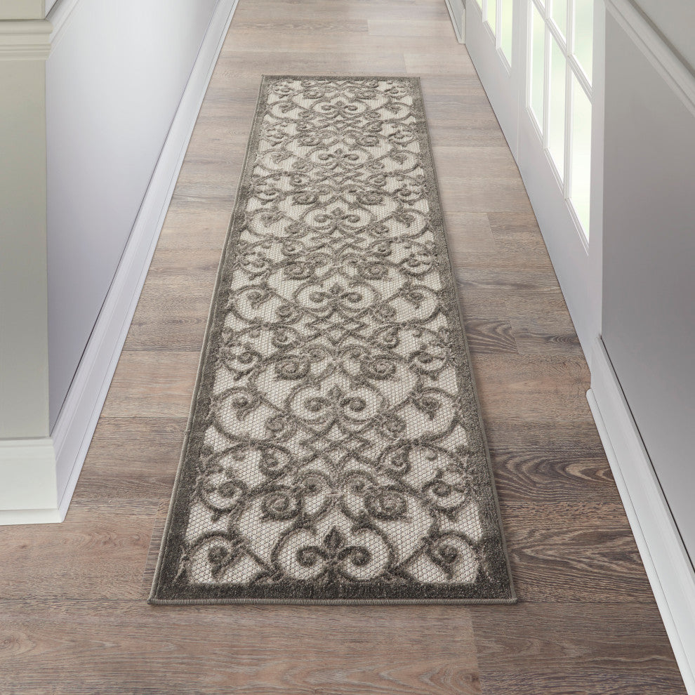 Nourison Aloha 2'3" x 8' Grey Charcoal Contemporary Rug