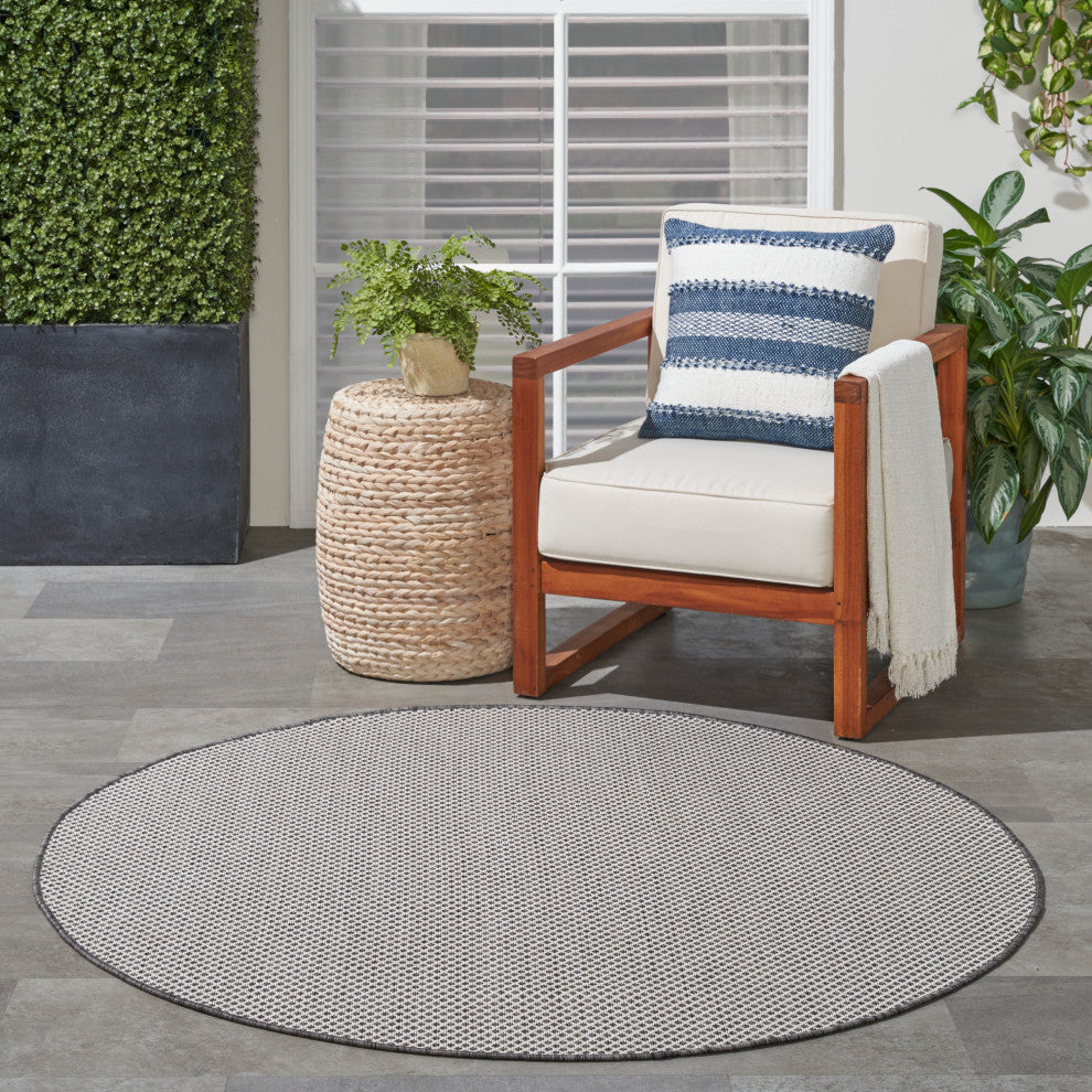 Nourison Courtyard 5' x Round Ivory/Charcoal Modern Rug
