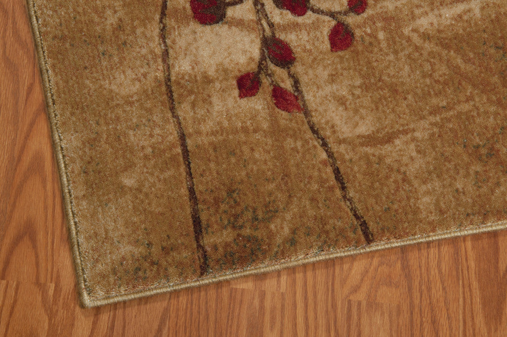 Delicate leaves and branches grow gracefully across this lush pile rug. Rich hues of taupe, crimson, and moss green are lit up with a subtle sheen from the plush, ombre pile, lending an air of understated elegance to any environment.
