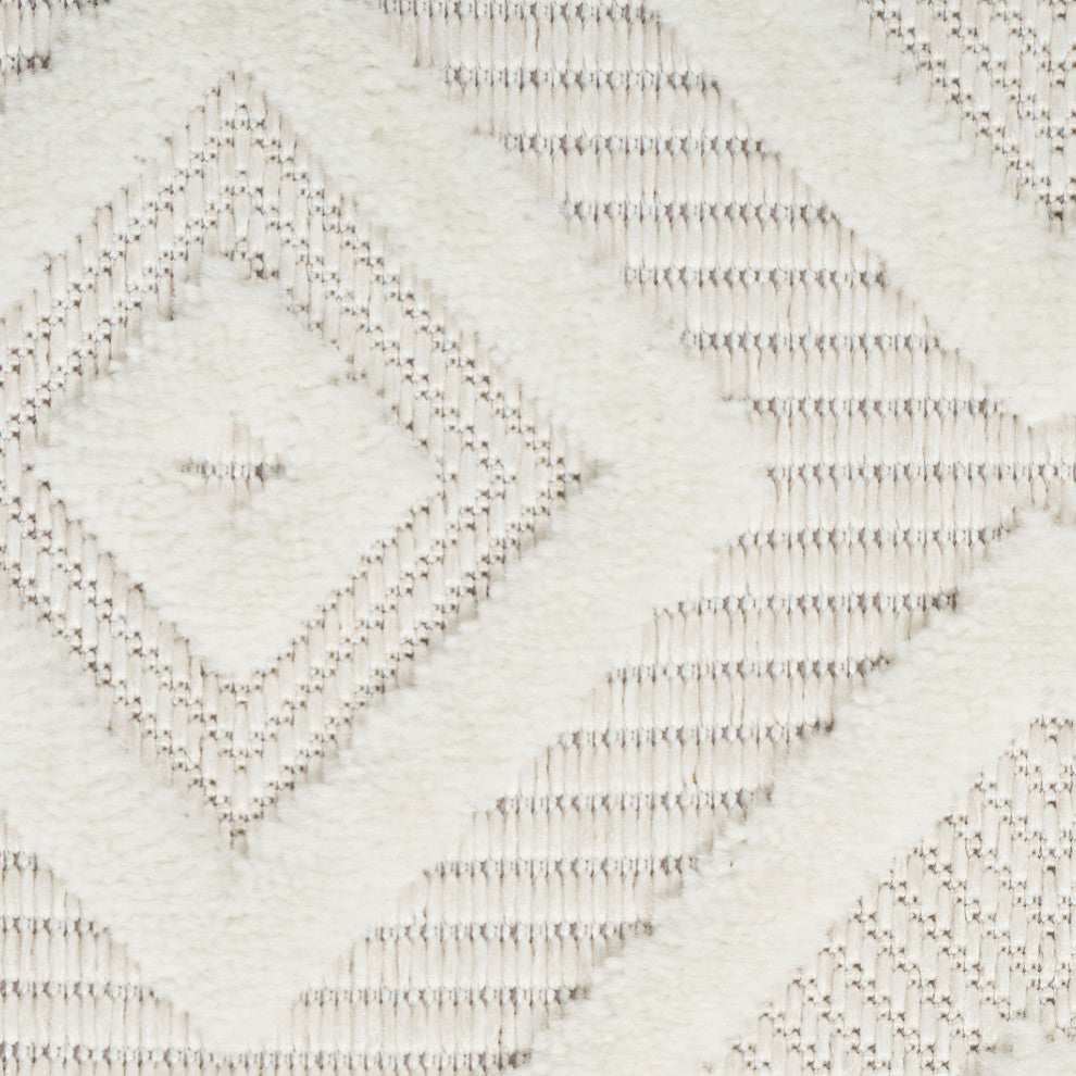 This ivory and white Nourison Versatile Collection rug brings inviting style to your favorite indoor or outdoor space. With a raised diamond design that stands out beautifully against its flatwoven ground, this outdoor rug enhances your space with delightful texture and modern appeal. Machine-made from durable, easy-to-clean fibers, Versatile is great for high-traffic areas inside the home as well as all seasons spent outdoors. To care for this rug, we recommend rinsing outdoors with a hose. Air dry both sides fully; do not place into a washing machine.
