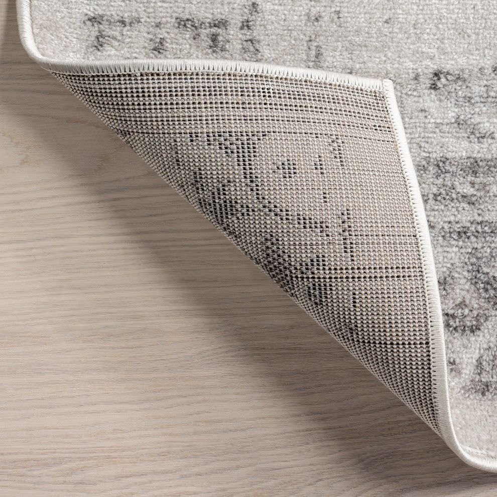 This distressed traditional area rug will be the finishing touch to any room it is placed in. With a beautiful monochrome rosette in the middle of the rug, this floor covering will pair perfectly with any decor from traditional to modern. Machine made in Turkey of soft synthetic materials this rug is built to last. Create the home you have always dreamed of with our pet-friendly and easy to care for area rugs.100% Polypropylene, made in TurkeyDesigned with resilience against everyday wear-and-tear, this rug is kid and pet friendly and perfect for high traffic areas of your home such as living room, dining room, kitchen, and hallwaysA medium 0.31" pile height allows for convenient placement in entryways and underneath furnitureEasy to clean and maintain, we recommend vacuuming regularly and spot treating any mild stains with carpet cleanerWe recommend using a rug pad to provide extra cushioning and to prevent any possible slipping and sliding on your flooring. Rug pads serve as protective layering piece for your floor and your rug from any wear and tear, extending the life of your rug.