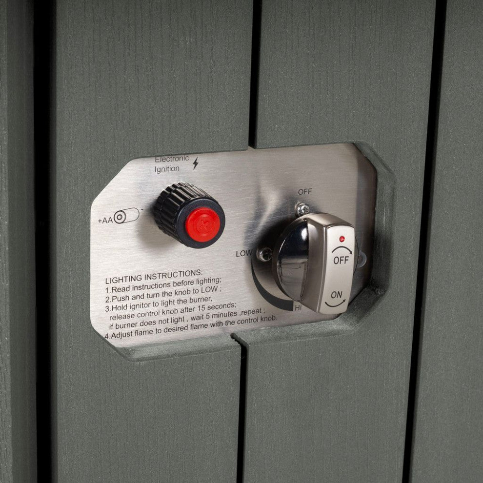 Create the perfect outdoor gathering space with the Oasis Fire Pit Table. Featuring a realistic wood-look crafted from durable poly lumber, this table offers both style and functionality. Available in several nature-inspired colors, it provides a stunning focal point for your patio. Powered by propane, it''s ready for cozy fireside chats and marshmallow roasts just add the propane tank. The table comes with a glass guard, steel lid, and a rain cover for year-round protection. The electronic ignition, powered by AA batteries, ensures easy lighting. Enjoy endless outdoor evenings with this versatile fire pit table.