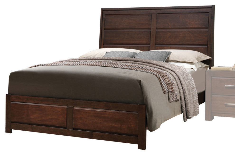 Every bedroom needs a stylish centerpiece to tie together its decor. The simple Oberreit Bed provides such a centerpiece, adding a classic touch without detracting from other decorative elements in the space. The paneled headboard and rich walnut finish bring in a timeless yet distinctly craftsman-style touch to your master or guest room.Color: WalnutSize: Eastern kingDimensions: W 79" x D 87" x H 55"Materials: Rubber wood, MDF, plywood and chipboard