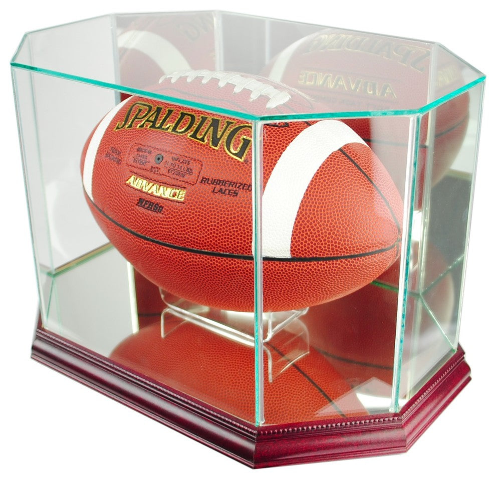 Octagon Football Display Case, Cherry