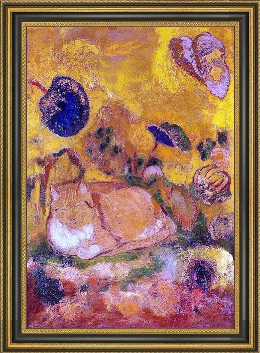 Odilon Redon Bazon  the Artist's Cat - 16" x 24" Framed Premium Canvas Print