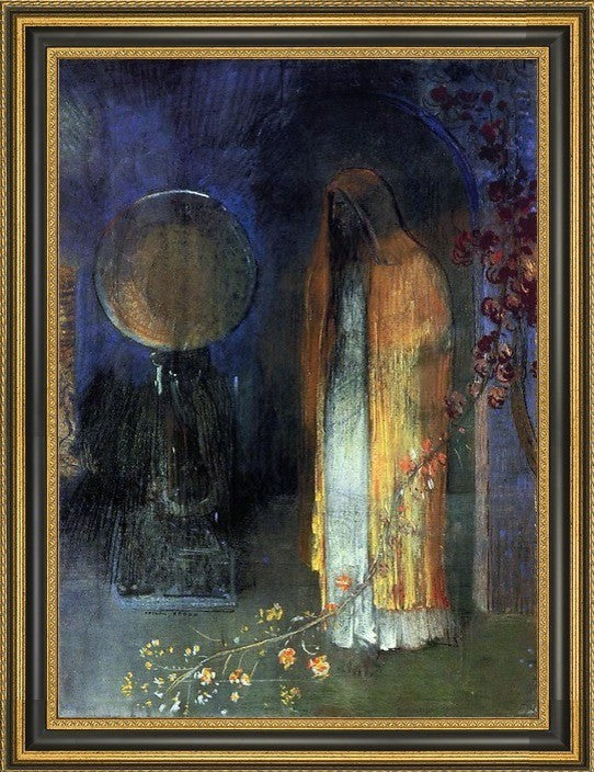 16" x 24" Odilon Redon The Yellow Cape framed premium canvas print reproduced to meet museum quality standards. Our Museum quality canvas prints are produced using high-precision print technology for a more accurate reproduction printed on high quality canvas with fade-resistant, archival inks. Our progressive business model allows us to offer works of art to you at the best wholesale pricing, significantly less than art gallery prices, affordable to all. This artwork is hand stretched onto wooden stretcher bars, then mounted into our 3 3/4" wide gold finish frame with black panel by one of our expert framers. Our framed canvas print comes with hardware, ready to hang on your wall. We present a comprehensive collection of exceptional canvas art reproductions by Odilon Redon.