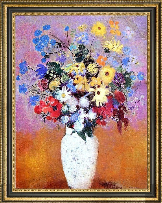 21" x 28" Odilon Redon White Vase with Flowers framed premium canvas print reproduced to meet museum quality standards. Our Museum quality canvas prints are produced using high-precision print technology for a more accurate reproduction printed on high quality canvas with fade-resistant, archival inks. Our progressive business model allows us to offer works of art to you at the best wholesale pricing, significantly less than art gallery prices, affordable to all. This artwork is hand stretched onto wooden stretcher bars, then mounted into our 3 3/4" wide gold finish frame with black panel by one of our expert framers. Our framed canvas print comes with hardware, ready to hang on your wall. We present a comprehensive collection of exceptional canvas art reproductions by Odilon Redon.