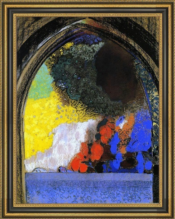 21" x 28" Odilon Redon Woman in Profile under a Gothic Arch framed premium canvas print reproduced to meet museum quality standards. Our Museum quality canvas prints are produced using high-precision print technology for a more accurate reproduction printed on high quality canvas with fade-resistant, archival inks. Our progressive business model allows us to offer works of art to you at the best wholesale pricing, significantly less than art gallery prices, affordable to all. This artwork is hand stretched onto wooden stretcher bars, then mounted into our 3 3/4" wide gold finish frame with black panel by one of our expert framers. Our framed canvas print comes with hardware, ready to hang on your wall. We present a comprehensive collection of exceptional canvas art reproductions by Odilon Redon.