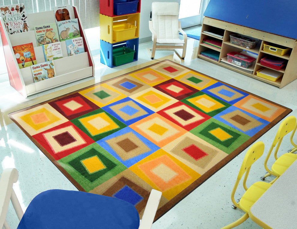 This unique carpet with slightly off-balance squares will work equally well as an accent rug under a coffee table or a cool place for kids to "kick back." Color options define the mood for fun or sophistication. • Machine Tufted - Cut Pile • SoftFlex • Joy Tuff Rug Lifetime Limited Warranty • CRI Green Label Plus