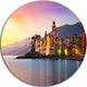 Old Mediterranean Town At Sunrise, Seashore Disc Metal Wall Art, 11"