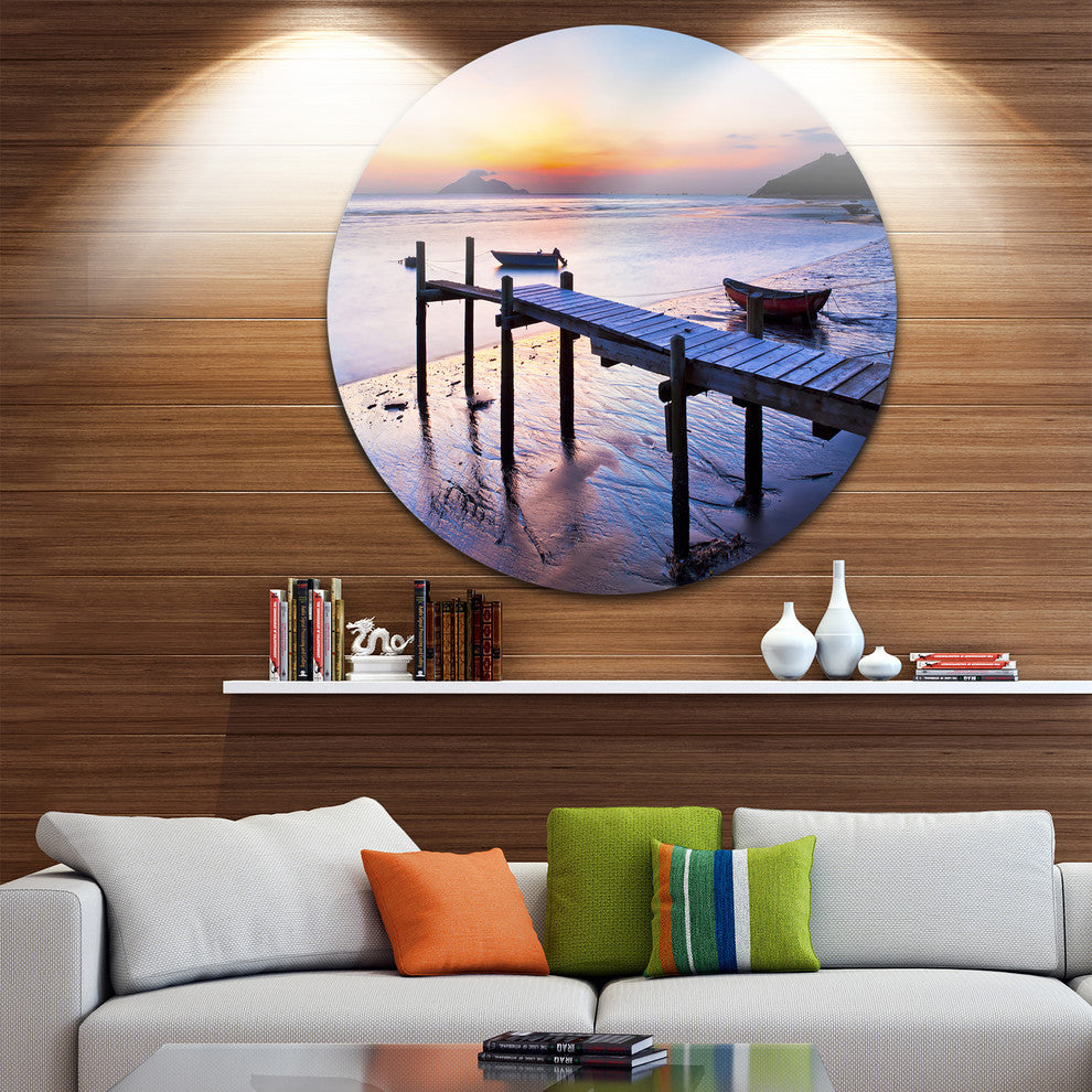 Bring Contemporary Abstraction to your home with this large Circle Metal wall art. This Old Wooden Pier at Sunset Metal Artwork makes it the focal point of any room or office.