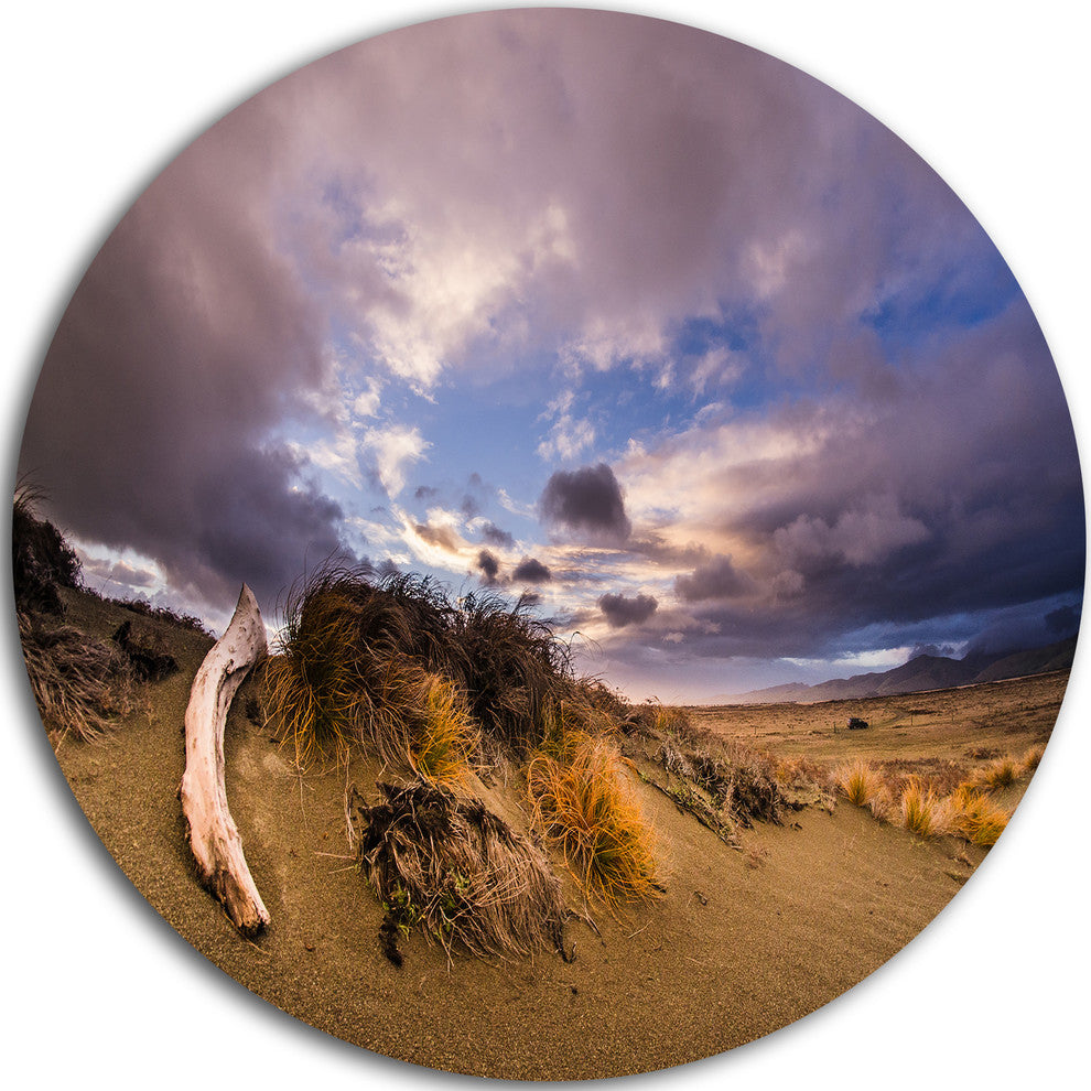 Old Wooden Trunk In The Sunset, Modern Seascape Round Wall Art, 36"