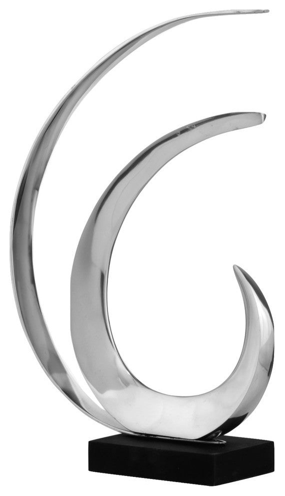 A perfect accent piece on the desk in your home office, on the console table in the living room or on the bookshelf in the library, the Oleada Wave Sculpture makes a modern statement in your home. Sleek and stylish, this decorative accent sits atop a solid black base and features a design that''s reminiscent of a crashing wave, made with high luster aluminum.