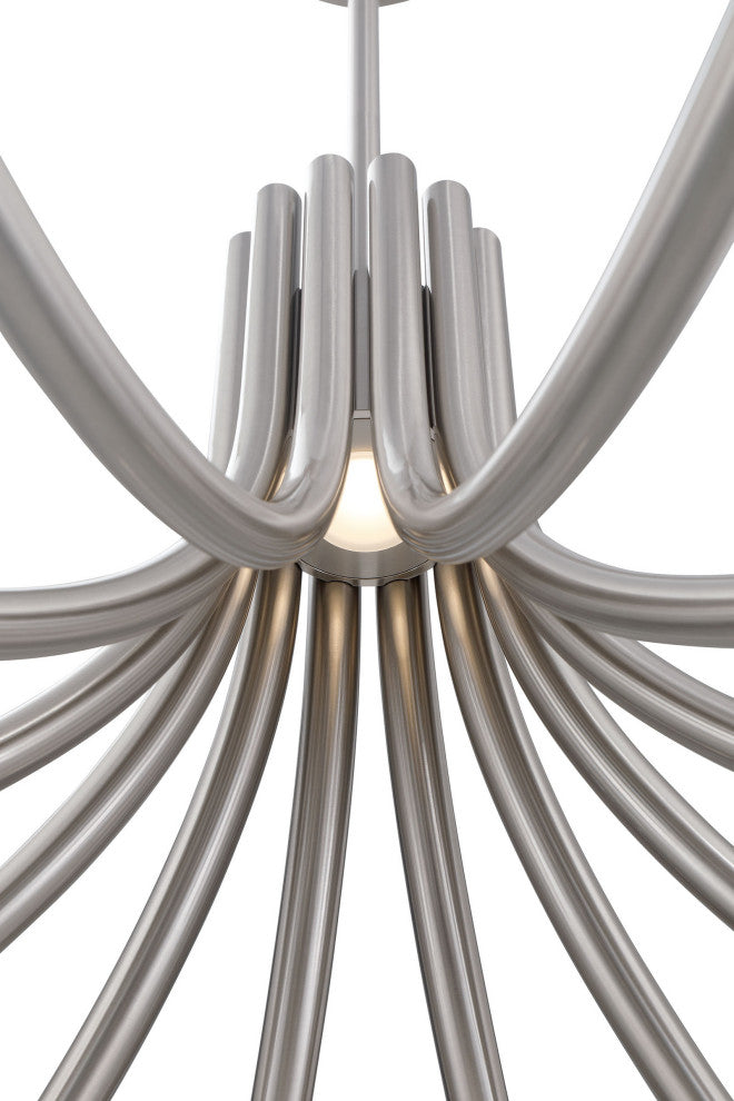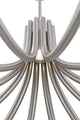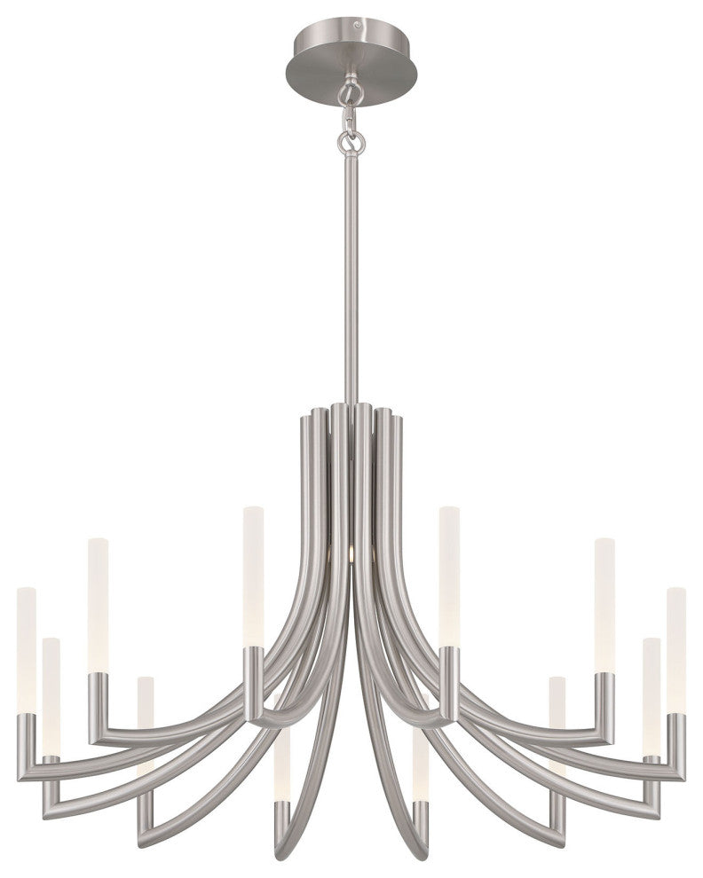 This elegant 12-light chandelier features a brushed nickel frame with frosted glass, offering a polished, sophisticated look. Perfect for large rooms, it provides a soft, diffused light. This product is cETLus certified.•Number of Lights: 12•Bulb Type: LED integrated•Wattage: 3.3W•LED Color Temperature (K): 3500K•Dimmable: Yes•Bulb Included: Yes•Voltage: 120V•Hardwire or Plug-in: Hardwired